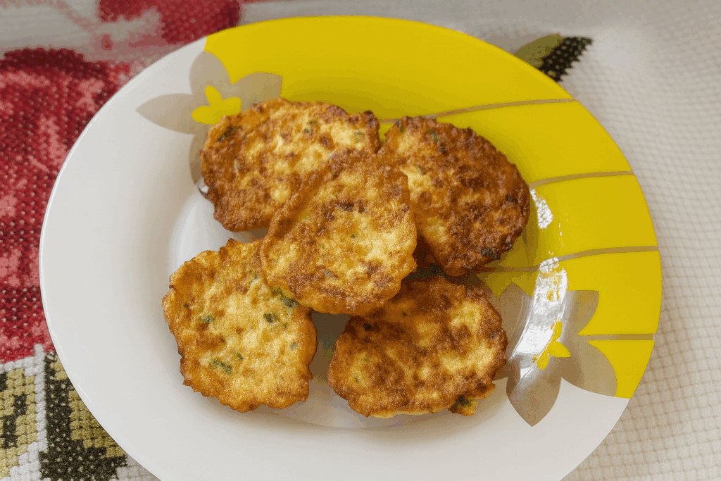 - Con una cuchara, vierte porciones de la masa en la sartén caliente, formando pequeños panqueques. Puedes ajustar el tamaño según tus preferencias.